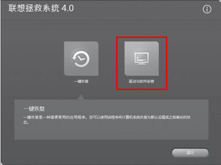 1、打开电脑电源开关,迅速连续敲击键盘的“F2”按键,启动“拯救系统”,在拯救系统的功能选项中选择“驱动与软件安装”