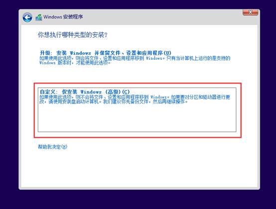 4、选择“自定义:仅安装windows(高级)”;