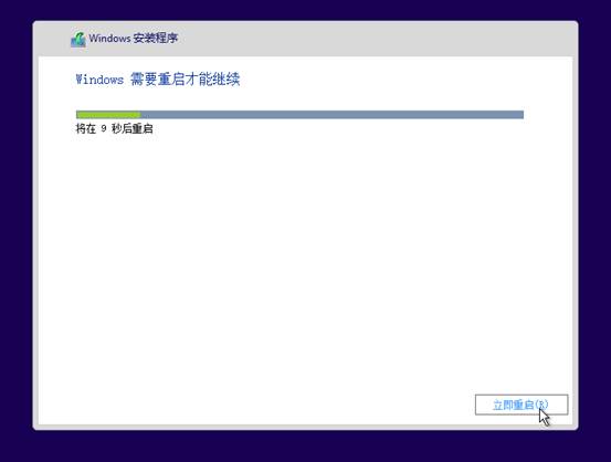 7、完成后重启;