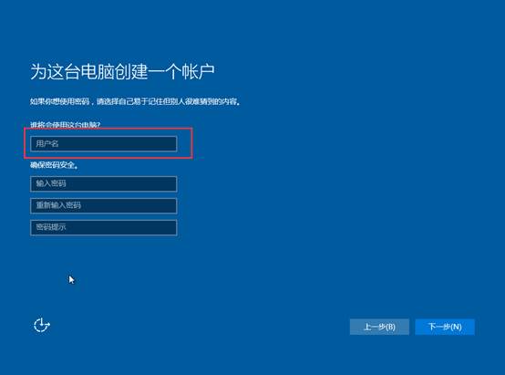 12、设置一个用户名,密码可设可不设。单击“下一步”完成设置;