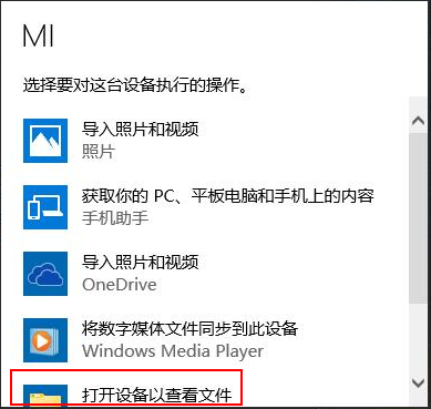 3、电脑端识别手机后会弹出读取模式选择,若希望读取存储卡上的内容,选择“打开设备以查看文件”即可。