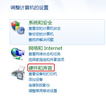 2、点击“硬件和声音”:
