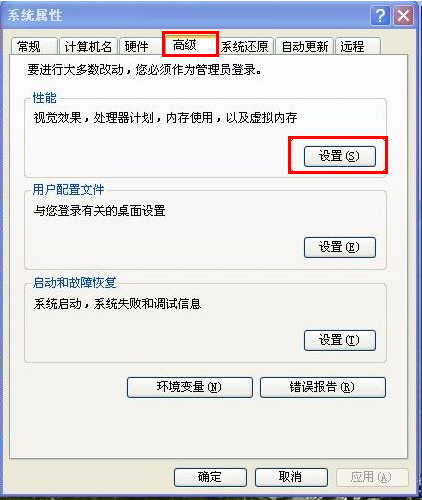 1、右击“我的电脑”,依次单击“属性/高级/性能设置”,如下图: