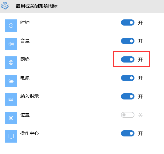 4. 点击下图红色框内的白色小圆点,即可关闭网络图标在任务栏中的显示。