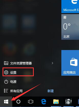 1、点击开始菜单(红色箭头所指位置),鼠标左键点击“设置”;