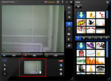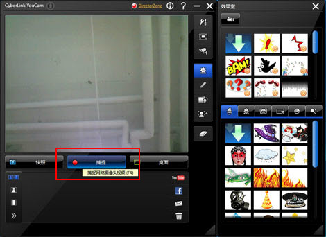 2. 弹出Cyberlink YouCam面板,点击“捕捉”按钮,即可用摄像头摄录视频;
