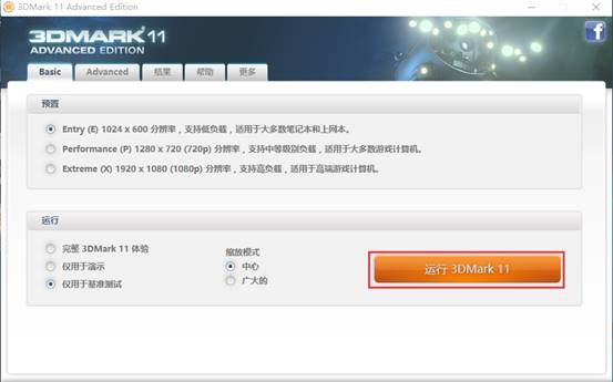 2.打开软件后,选择“运行3DMark 11”;