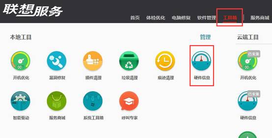 1、打开联想服务客户端,找到“工具箱”如图: