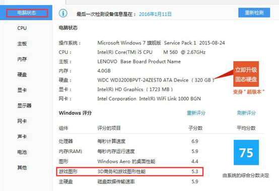 3、在“电脑状态”-“游戏图形”选项下,查看评分详情。