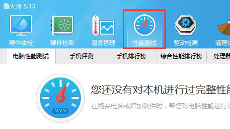 1.打开鲁大师选择“性能测试”选项;