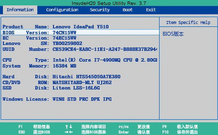 1、采用Insyde或Phoenix的BIOS Setup界面,可通过“BIOS Version”进行了解;如图所示: