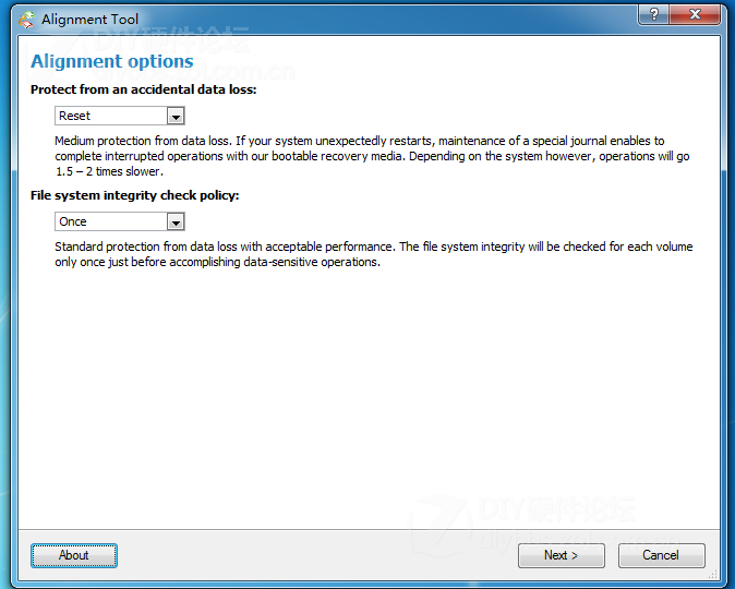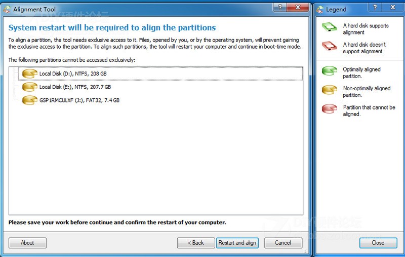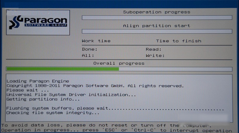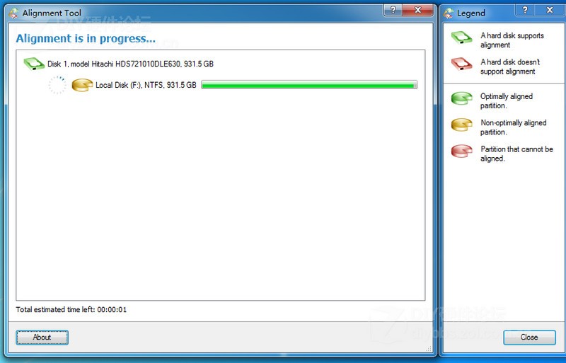 注意:此过程中电脑不要断电,对齐程序也不要强制停止,否则可能会导致硬盘损坏!