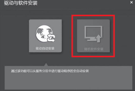 3、重启系统,进入Windows操作系统,在应用界面中启动“驱动与软件安装”,然后根据提示,手动安装相应的随机软件;如图所示: