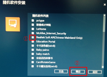 4、进行软件安装时,在软件列表中勾选需要的软件,点击“确定”进行安装;如图所示: