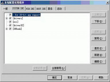 二、SYSTEM.INI选项卡和WIN.INI选项卡