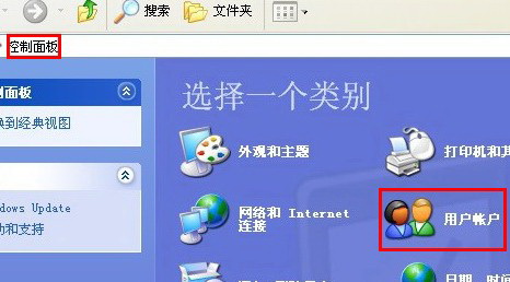 2、在“控制面板”中,找到并点击“用户帐户”。