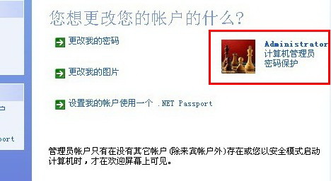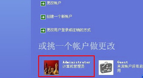 3、在“选择要更改的用户”里,单击要设置密码的帐户,比如帐户“Administrator”。