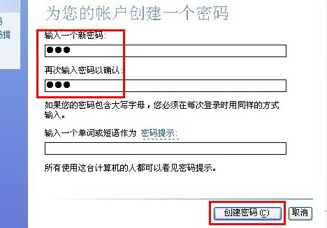 5、在文本框位置输入要设置的密码并确认密码,然后单击“创建密码”。