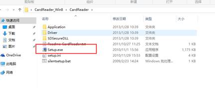 2、找到解压后的读卡器驱动文件夹,双击打开运行安装程序,通常安装程序为“Install”,“Setup.exe”等程序名,双击安装,安装步骤如图所示: