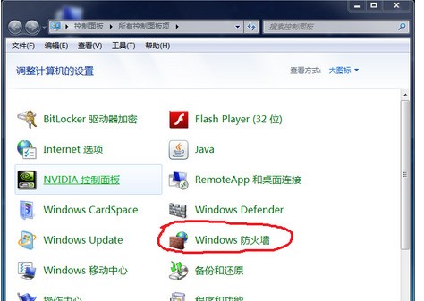 1、首先选择开始菜单进到控制面板,然后选择windows防火墙;