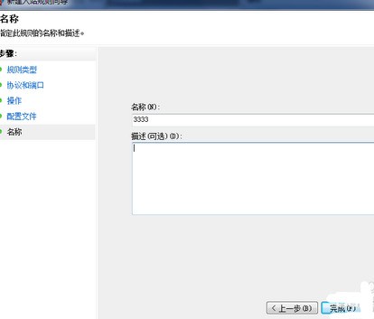 9、名字最好写上所打开端口的名称,方便下次寻找,点击完成。