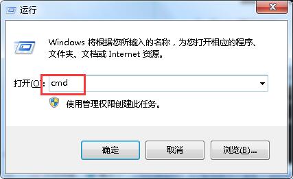 1.按下Win+R键打开运行窗口,输入“cmd”按回车确认。如下图所示: