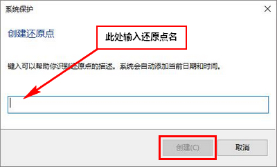 6、输入要创建还原点的描述以方便查看,然后点击“创建”,系统会提示正在创建还原点,如图所示: